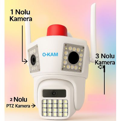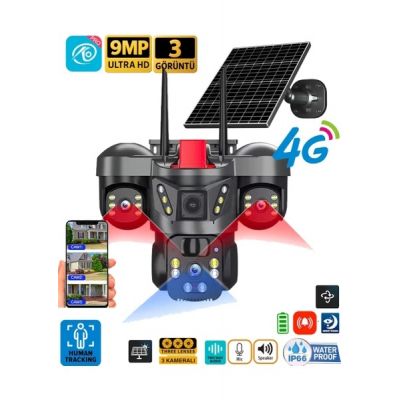 O-Kam 7070 9mp Lens 3 Kamera Ultrahd 4g Solar Gece Görüş Kişi Takip Akıllı Güvenlik Kamerası Çakarlı 94,00 $