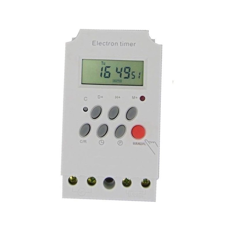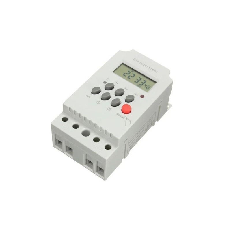 Özellikler: Haftada 24 saat / 7 gün programlanabilir Elektrik kesintisi durumunda belleği yedeklemek için dahili pil Otomatik zaman hatası düzeltme +/- 30 saniye, haftalık Standart çalışma güç kaynağı Voltaj: 220V 50HZ Voltaj aralığı:175-250V Kapasite: 25A Ekran : LCD Zamanlayıcı aralığı: 1 Saniye~168 saat Normal Zamanlayıcı: her gün veya haftada 18 kez açma/kapama Mini aralık: 1 dakika Histerezis: 2 sn/gün (25°C) Ortalama hata: 1 sn/24 saat, 25°C Pil gücü: 5 yıl Güç tüketimi 1 VA (MAKS.) Sıcaklık aralığı: -25°C~+60°C montaj: DIN ray tipi: Zamanlayıcı renk:Gri Malzeme:plastik Paket İçeriği: 1 x Dijital Zamanlayıcı Yalnızca yukarıdaki paket içeriği, diğer ürünler dahil değil. Not: Işık yansıması ve farklı ekranlar, resimdeki öğenin renginin gerçekte biraz farklı olmasına neden olabilir. İzin verilen ölçüm hatası +/- 1-3 cm'dir.